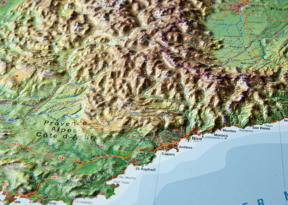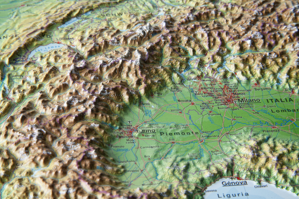 Wandkaart - Reliëfkaart van de Alpen met voelbaar 3D Reliëf, 77 x 57 cm | GeoRelief (4280000002457)