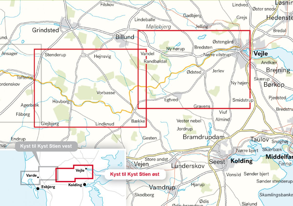 - Wandelkaart Terrängkartor Kyst til Kyst stien: West - Coast to Coast path West | Denemarken | Calazo