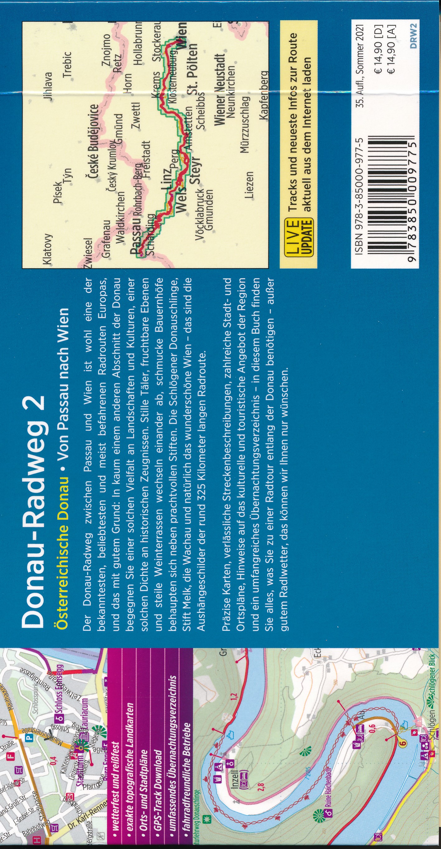 Praktische fietsgids met detailkaarten, ingetekende route, informatie over overnachten en fietsenmakers, zwaarte en hoogteprofiel. In spiraalbinding. Duitstalig. Inclusief een QR-code waarmee actuele routewijzigingen en overnachtingsmogelijkheden geraadpleegd kunnen worden.