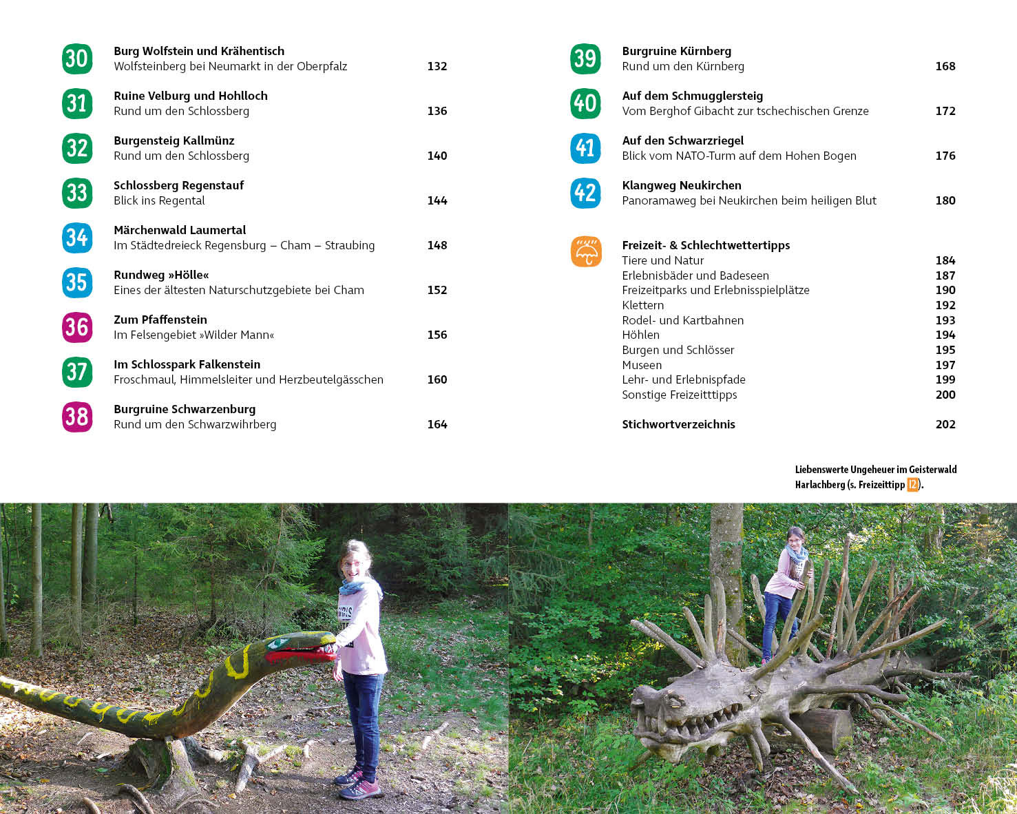 Alle Touren in diesem ErlebnisWanderbuch wurden von Kindern getestet. Für die einfache Planung gibt es zu jeder Wanderung eine Altersempfehlung sowie Angaben zu Schwierigkeit und Dauer. Die zuverlässige Wegbeschreibung wird von einem Kartenausschnitt mit eingezeichneter Route, einem Höhenprofil und Fotos ergänzt. Mit den GPS-Tracks, die zum Download bereitstehen, wird das Navigieren kinderleicht. Und für die Kinder hat das kleine Murmeltier »Rothi« allerlei Wissenswertes rund um die Oberpfalz und mysteriöse Geschichten aus längst vergessenen Zeiten parat.