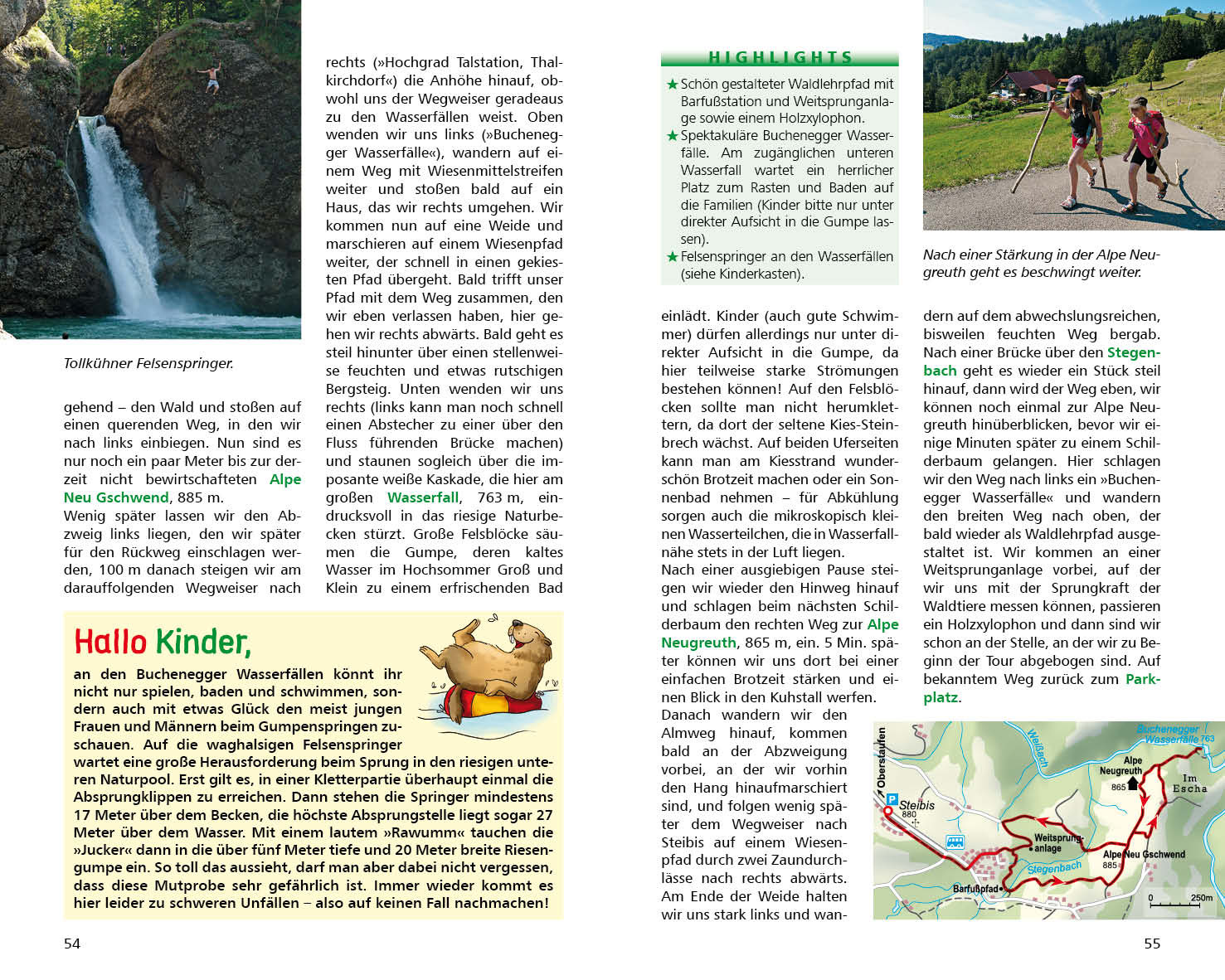Detaillierte Wegbeschreibungen, Fotos, Höhenprofile, Karten und GPS-Daten zum Download machen das Wandern einfach. Altersempfehlungen, Angaben zur Schwierigkeit und zur Gehzeit sowie die »Highlights« für Kinder helfen bei der Tourenauswahl. Zusätzlich werden Infos zur Kinderwagen- und Barfußtauglichkeit gegeben. Fast alle Ziele in diesem Buch sind mit öffentlichen Verkehrsmitteln erreichbar. Und »Rothi«, das kleine Murmeltier, erklärt den Kindern Naturphänomene und Besonderheiten.