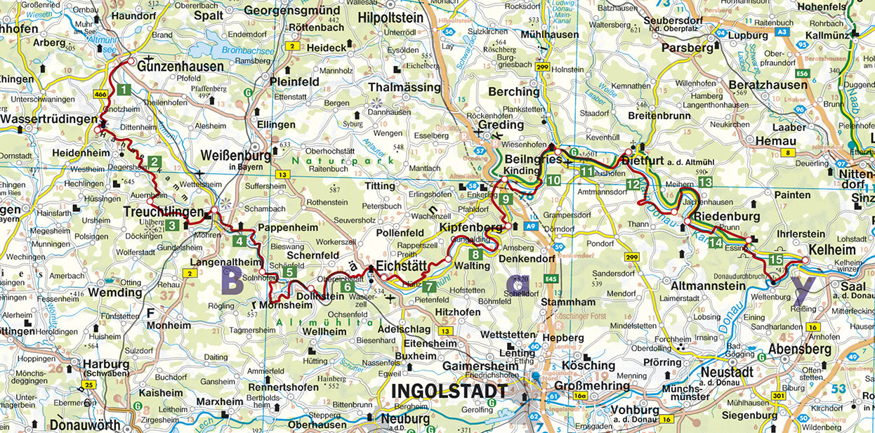 von Gunzenhausen nach Kelheim, 15 etappen