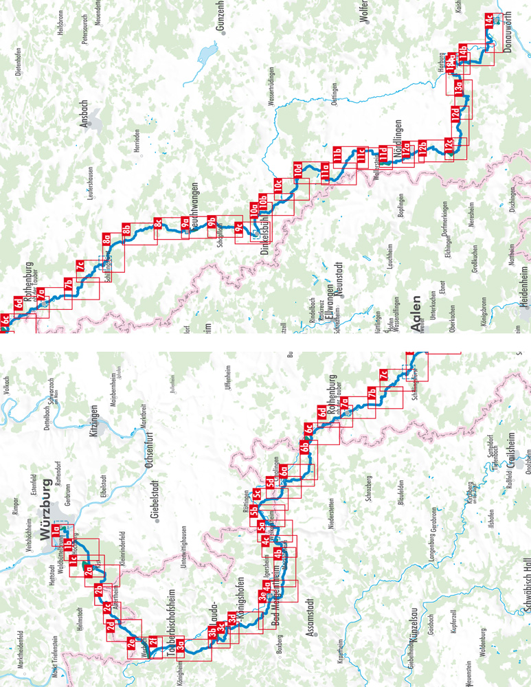 Degelijke gids van de Romantische Strasse route tussen Donauwörth en Füssen. Goede beschrijving met behoorlijk kaartmateriaal en praktische informatie. op scheur- en watervast papier.