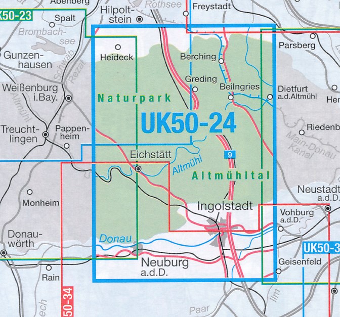 Goede wandelkaart van het centrale deel van het beroemde Altmühltal.