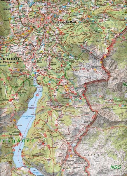 Veel grote wandelingen kunnen maken dankzij de gedetailleerde topografische kaart van de Berchtesgaden Alpen in Duitsland.