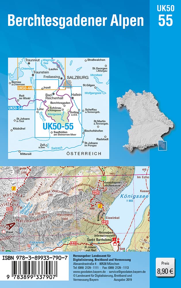 Wandelkaart 55 UK50 Bayern Berchtesgadener Alpen | LVA Bayern (9783899337907)