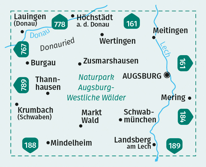 - Wandelkaart 162 Augsburg - Westliche Wälder | Kompass