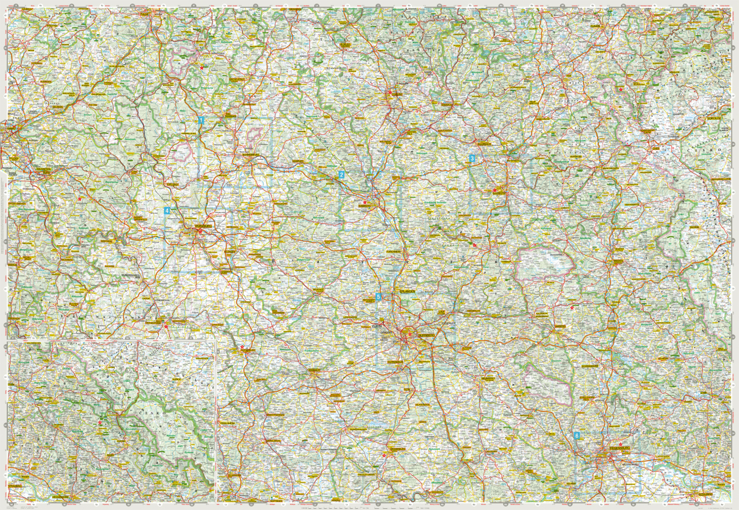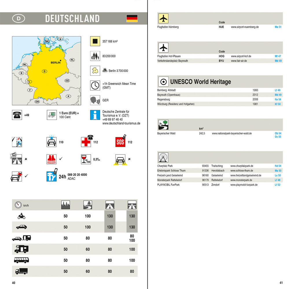 Goede wegenkaart van een deel van Duitsland,met schaal 1:200.000: meer details dan de Michelin wegenkaarten van Duitsland. Deze kaarten hebben een register, een tabel met afstanden tussen steden, enkele centrumkaarten van de meest belangrijke steden, vermelding van o.a. campings aan de hand van symbolen alsmede de bezienswaardigheden. Ook benzinepompen worden bijvoorbeeld vermeld!