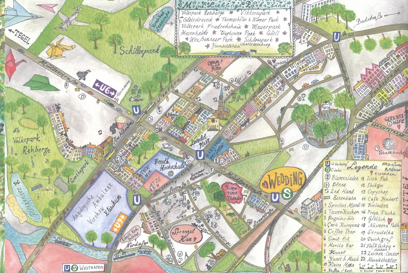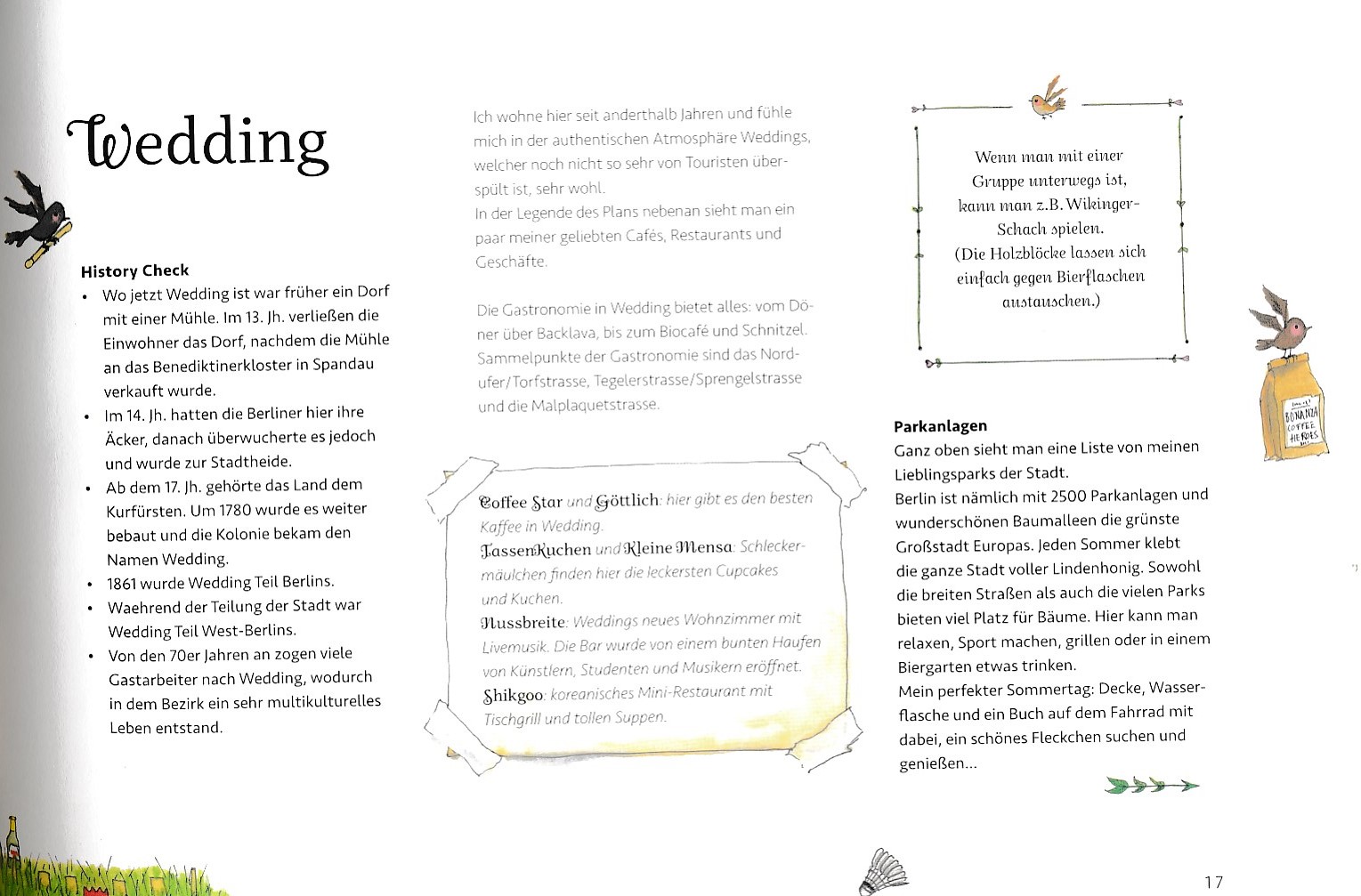 'In this book you’ll find 80 pages with over 30 detailed drawings of my favorite places in the city of Berlin. The text is in German and tells you something about the history of the city, nice restaurants and cafes and other insider tips.'