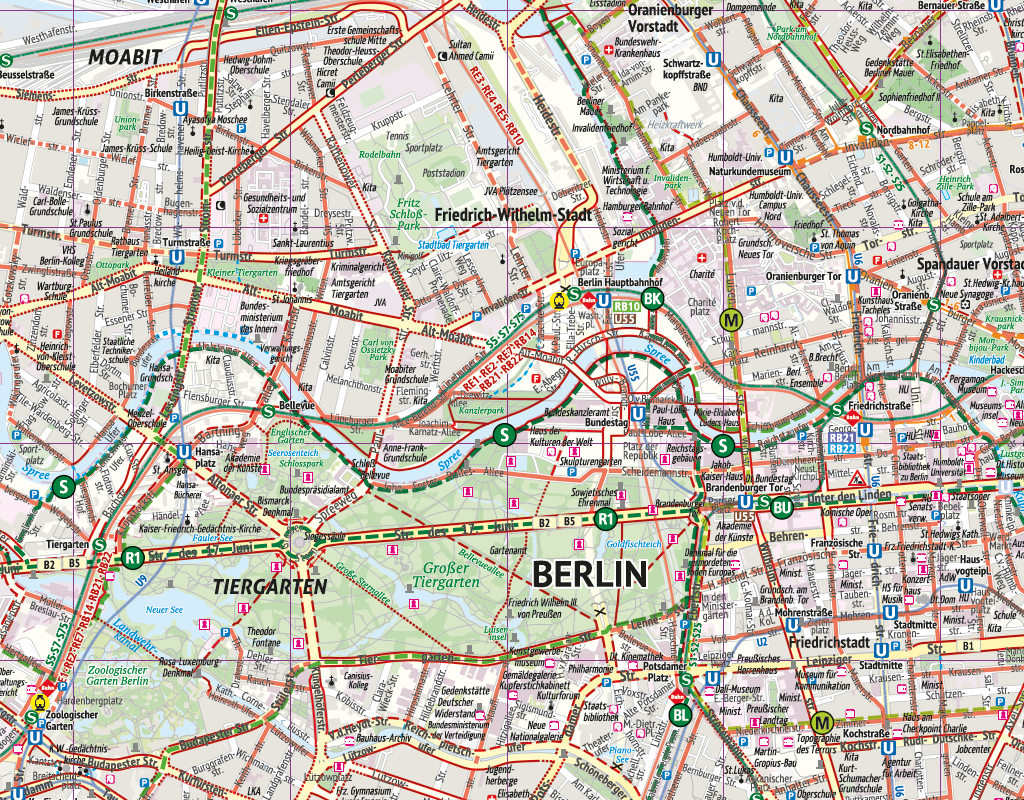 ADFC-Fahrrad-Stadtplan Berlin mit Koordinatengitter für GPS-Nutzer (Top-Stern-Karte Pietruska)