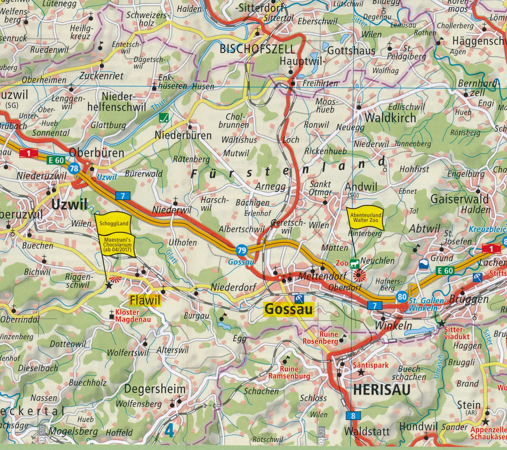 Der Bodensee ist allein schon durch seine geografische Lage eine ideale Urlaubsregion. Sein Ufer berührt die Schweiz, Österreich und Deutschland, und so bietet er die Möglichkeit, in kurzer Zeit gleich drei Länder zu besuchen. Der ufernahe Bodenseeradweg ist im Kartenteil eingezeichnet. Der Infoteil des Erlebnisführers gibt Auskunft über die vielen touristischen Attraktionen direkt am See oder in seiner näheren Umgebung: die Inseln Mainau und Reichenau, das Zeppelin-Museum in Friedrichshafen, die Stiftskirche St.Gallen, das Alte Schloss in Meersburg oder das Kunstmuseum in Bregenz etc. werden auf der Rückseite des Erlebnisführers Bodensee vorgestellt.