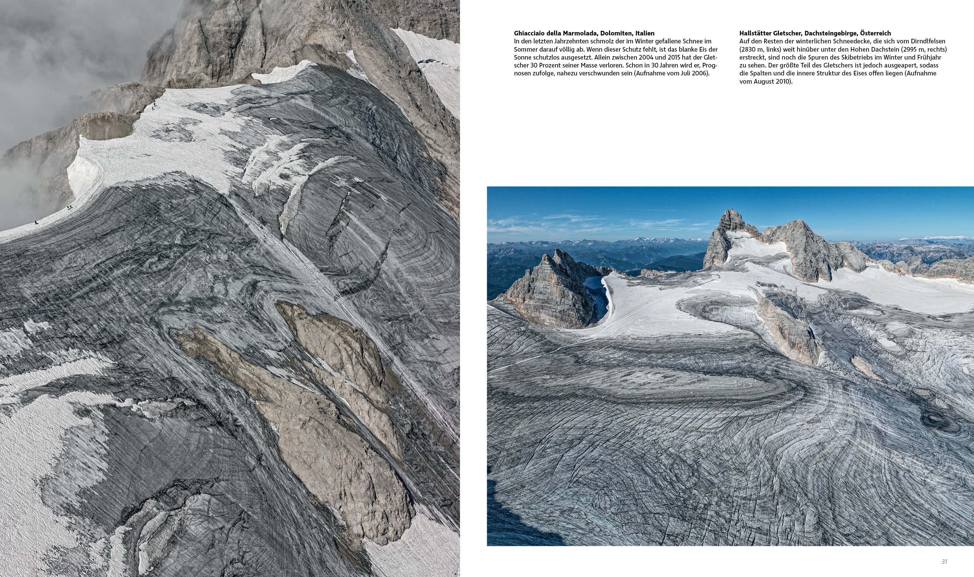 Steile Eisbrüche, spaltenreiche Gletscherzungen, Gletschertore, aus denen glitzernde Schmelzwasserbäche quellen, vom tauenden Permafrost zerrissene Gipfel und gigantische Moränenzüge – mit atemberaubenden Bildern visualisiert Bernhard Edmaier, wie der Klimawandel die Alpen verändert. Die 185 außergewöhnlichen Aufnahmen zeigen, welche Formenvielfalt dabei verloren geht, aber zugleich auch, was neu entsteht: farbige Seenlandschaften, vom Eis geschliffene Felsen oder wüstenhafte Schutthänge, von denen die Vegetation allmählich wieder Besitz ergreift.