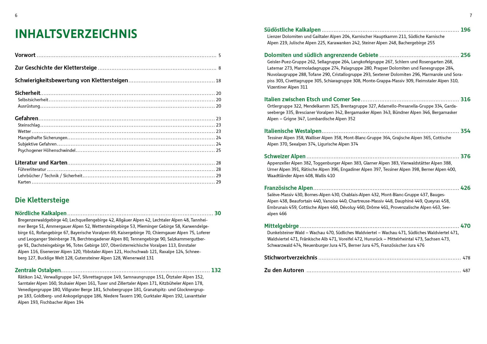 Gegliedert sind die Klettersteige nach Gebirgsgruppen, was sie schnell auffindbar macht.
