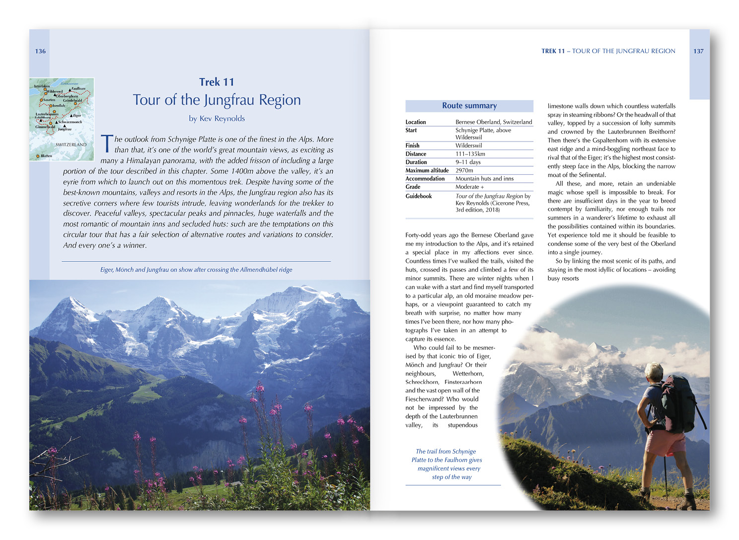 Tour of Mont Blanc; Tour of the Matterhorn; Tour of Monte Rosa; Walker’s Haute Route; Tour of the Jungfrau Region; Tour of the Vanoise; Dolomites AV 1 & 2
