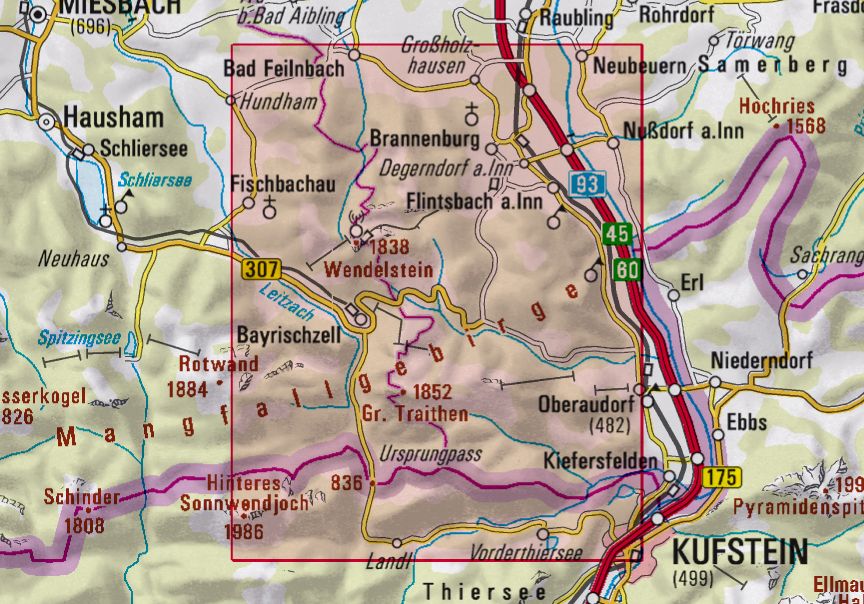 Bayrischzell, Kufstein, Bad Feilnbach, Brannenburg, Flintsbach am Inn, Neubeuern, Fischbachau, Nußdorf am Inn, Oberaudorf, Dürnbach, Hundham, Großholzhausen, Litzldorf, Reischenhart, Fischbach am Inn, Hechtsee, Thiersee, Wendelstein, Großer Traithen, Hinteres Sonnwendjoch, Dürrmiesing, Wildalpjoch, Breitenstein