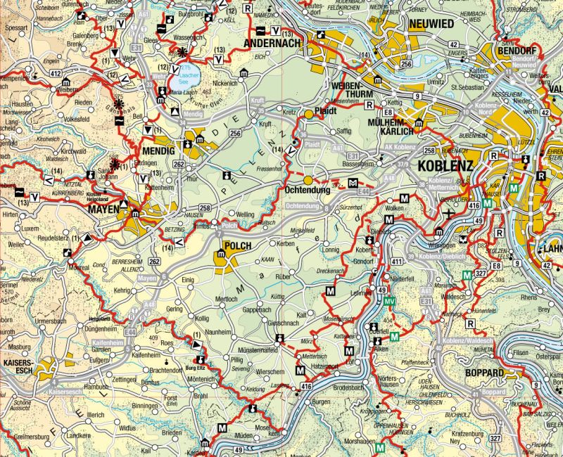 Vorderseite: Hauptwanderwege des Eifelvereins;