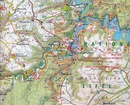 Mooie duidelijke geplastificeerde kaart. Op de kaart staan veel langeafstandswandel- en fietsroutes aangegeven. Niet alle wandelpaden staan op de kaart. Onduidelijk wanneer een fietsroute verhard is en wanneer autovrij. Geen onderscheid tussen paden die met een gewone fiets te doen zijn en paden waarvoor je een echte mountainbike nodig hebt.