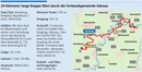 Die Wanderkarte zum Ahrsteig im Maßstab von 1:25000 erleichtert an allen Wegepunkten die Orientierung. Rund 110 traumhafte Kilometer windet sich der neue Ahrsteig in zwei Teilabschnitten von der Quelle in einem historischen Fachwerkhaus in Blankenheim bis zur Mündung in den Rhein bei Sinzig. Zusätzlich sind die Verbindungswege, der Rotweinwanderweg sowie Rundwege durch das Sahrbachtal und die Dörferblick-Schleife eingezeichnet. Insgesamt ergeben sich so 233 Kilometer Wanderspaß im Roweinparadies. Höhenprofile zu jeder Tour machen die Karte komplett.