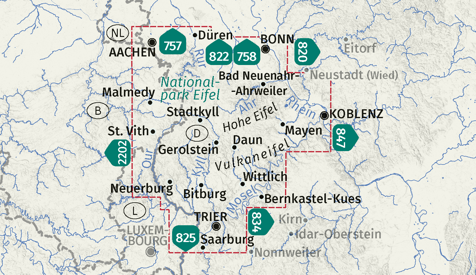 - Eigenschappen van de wandelkaartenset Eifel: