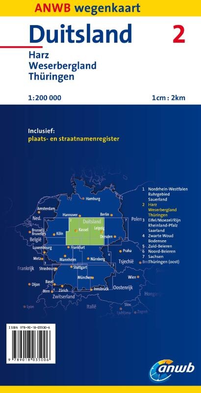 Wegenkaart - landkaart 2 Duitsland: Harz - Weserberg - Thüringen | ANWB Media (9789018035006)