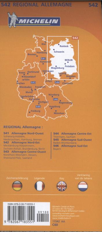 Wegenkaart - landkaart 542 Mecklenburg-Vorpommern, Sachsen-Anhalt, Brandenburg, Berlijn | Michelin (9782067183551)