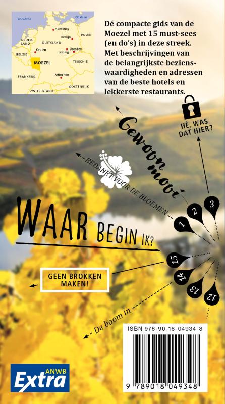 Beleef de Moezel met de compleet vernieuwde reisgids ANWB Extra Moezel! Van bron tot monding stroomt de ongeveer 500 kilometer lange Moezel door drie landen. Vanaf de steile wijnhellingen aan de oever ontvouwt zich op veel plaatsen een adembenemend uitzicht op het slingerende lint van de rivier. De ANWB Extra reisgids Moezel biedt naast veel praktische tips over campings, vakantiehuizen, hotels en vervoer ook 15 inspirerende bezienswaardigheden die je niet mag missen. Maak een tocht langs de jugendstil wijnvilla’s van Traben-Trarbach, ga terug naar de tijd van de koude oorlog en bezoek de Bundesbank-Bunker in Cochem-Cond of wandel door het Romeinse erfgoed in Trier.