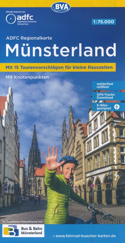 - Fietsknooppuntenkaart - Fietskaart ADFC Regionalkarte Münsterland | BVA BikeMedia