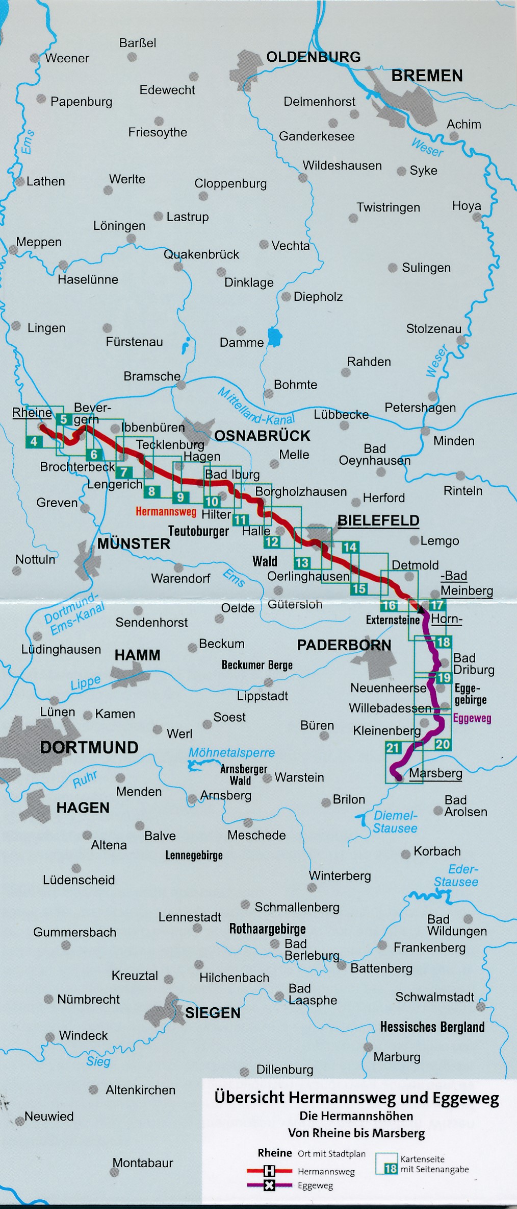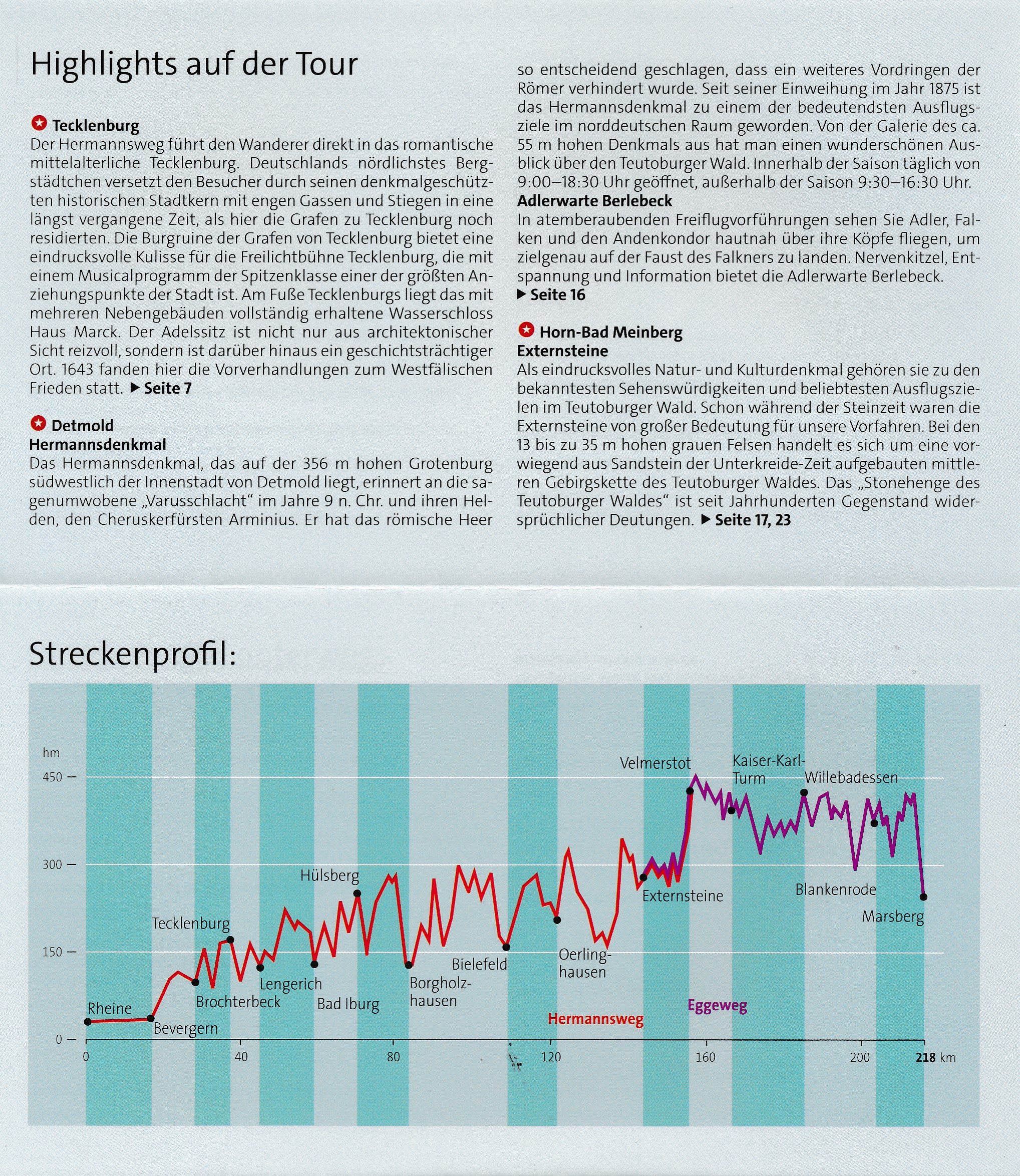 - • Bekannte Sehenswürdigkeiten am Weg sind das Hermannsdenkmal, die Dörenther Klippen mit dem Hockenden Weib, die Sparrenburg oder die Externsteine.