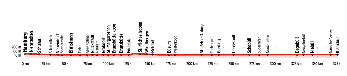 Die Länge des Nordseeküsten-Radweges in Schleswig-Holstein von Hamburg zur dänischen Grenze bzw. nach Sylt beträgt 357 Kilometer. Ausflüge und Varianten sind dabei nicht berücksichtigt.