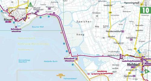 Und noch etwas Wichtiges: Das Betreten und Radfahren auf den Deichen und Deichvertei-digungswegen geschieht auf eigene Gefahr. Bitte rechnen Sie mit deichtypischen Hindernissen, Verschmutzungen und Unebenheiten (z. B. Treibgut, Schafkot, viele Schafgatter oder manchmal auch Schlaglöchern).
