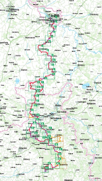 Außerdem zweigt in Enger/Hiddenhausen eine weitere alternative Strecke über einen Bahn- und Hanseweg durch Herfords Altstadt und Bad Salzuflen in Richtung Paderborn ab.