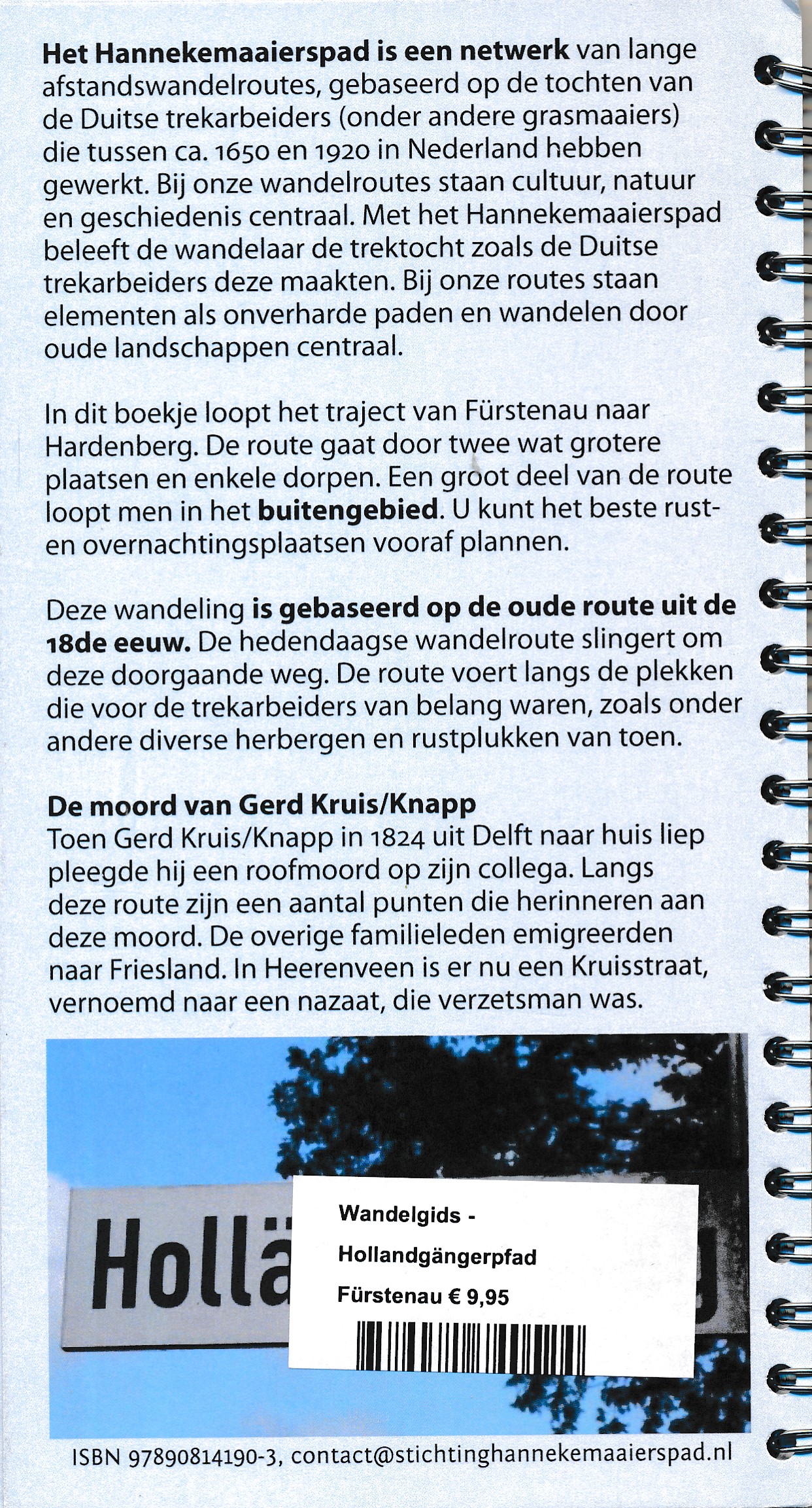 Het traject van het Hannekemaaierspad in dit Duitstalige boekje loopt van Fürstenau - Hardenberg en bedraagt in totaal 106 km. Deze wandeling is gebaseerd op de oude route uit de 18de eeuw. De hedendaagse wandelroute slingert om deze doorgaande weg.