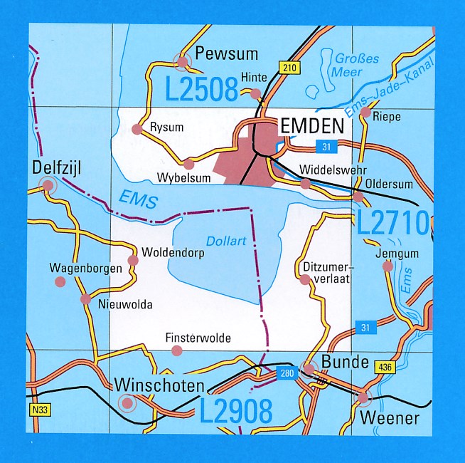 Topografische kaart L2708 Emden | LGL Niedersachsen (9783894354534)