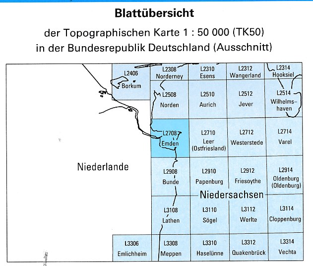 Topografische kaart van een deelgebied van Niedersachsen. De kaart kent alle topografische details op een schaal van 1:50.000. Let op: het is een zuiver topografische kaart - zeer geschikt voor veldwerk e.d. - maar laat geen toeristische aspecten zien.