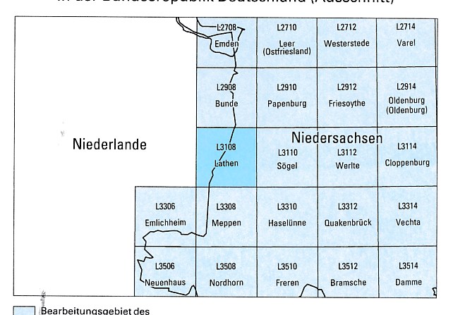 Topografische kaart van een deelgebied van Niedersachsen. De kaart kent alle topografische details op een schaal van 1:50.000. Let op: het is een zuiver topografische kaart - zeer geschikt voor veldwerk e.d. - maar laat geen toeristische aspecten zien.