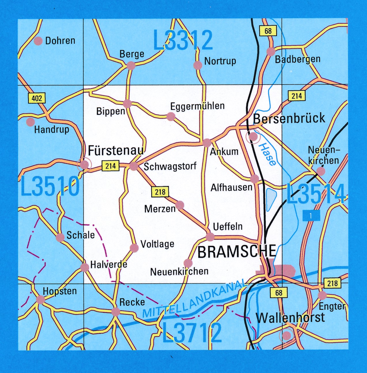 Topografische kaart van een deelgebied van Niedersachsen. De kaart kent alle topografische details op een schaal van 1:50.000. Let op: het is een zuiver topografische kaart - zeer geschikt voor veldwerk e.d. - maar laat geen toeristische aspecten zien.