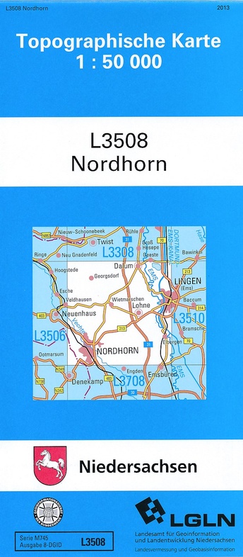 Topografische kaart van een deelgebied van Niedersachsen. De kaart kent alle topografische details op een schaal van 1:50.000. Let op: het is een zuiver topografische kaart - zeer geschikt voor veldwerk e.d. - maar laat geen toeristische aspecten zien.