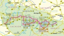 Als harmonica gevouwen kaart van de route inclusief tekens voor horeca, schuilhutjes etc. Aanbevolen voor wie een praktische kaart zoekt voor in de jaszak, niet aanbevolen voor wie meer details wil en ook weleens wat van de route af (wil) dwalen. Positief: * Hufterproof, vocht- en scheurbestendig * Handig compact gevouwen Negatief: * Weinig details dus weinig hoogtelijnen, ontbrekende zijpaden enz. dus lastig navigeren als je de route even kwijt bent * Een paar fouten in de ingetekende route en de plaats van symbolen is slordig * De bladen met standaard toeristische info en reclame voegen weinig toe