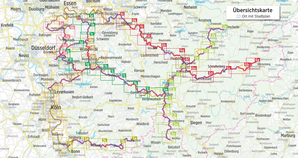Direct buiten de poorten van de Rijnlandse metropool Keulen ligt het Bergisches Land, dat zijn naam niet dankt aan het heuvelachtige landschap, maar aan de voormalige vorsten, de graven en latere hertogen van Berg. Verken het gevarieerde middelgebergtelandschap met zijn groene bossen, sappige, uitgestrekte weiden en talrijke meren en dammen op goed ontwikkelde fietsroutes en paden. Historische oude steden met de vakwerkhuizen en leistenen gebouwen die kenmerkend zijn voor deze regio, ademen nog steeds de echte Bergische charme uit. De hier gepresenteerde tochten door het Bergisches Land en door het Sauerland zijn individueel te combineren en bieden ontspannend en afwisselend fietsplezier.