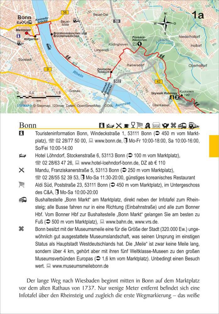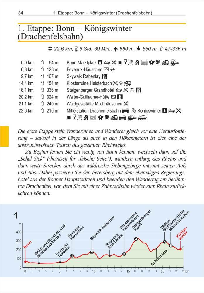 Degelijk wandelgidsje van de Rheinsteig, een beroemde lange afstands wandeling langs de Rijn. Goede beschrijvingen met praktische informatie en hoogteprofielen, kaartmateriaal is wat minder van kwaliteit (geen topografische kaarten)