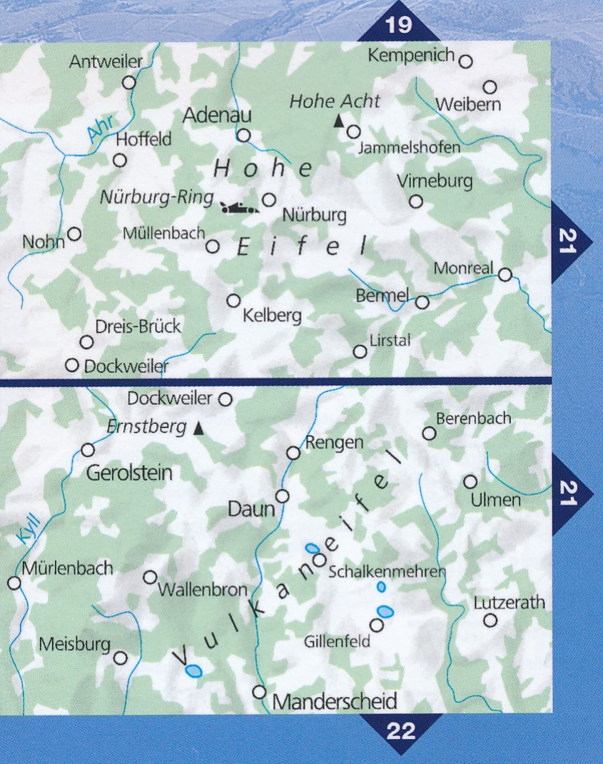 Dorpen, Bergen & Dalen: Antwiler, Ahr, Adenau, Hohe Acht, Weibern, Nürburg-Ring, Virneburg, Nohn, Monreal, Kelberg, Dockweiler, Ernstberg, Kyll, Gerolstein, Rengen, Daun, Berenbach, Ulmen, Lutzerath, Manderscheid