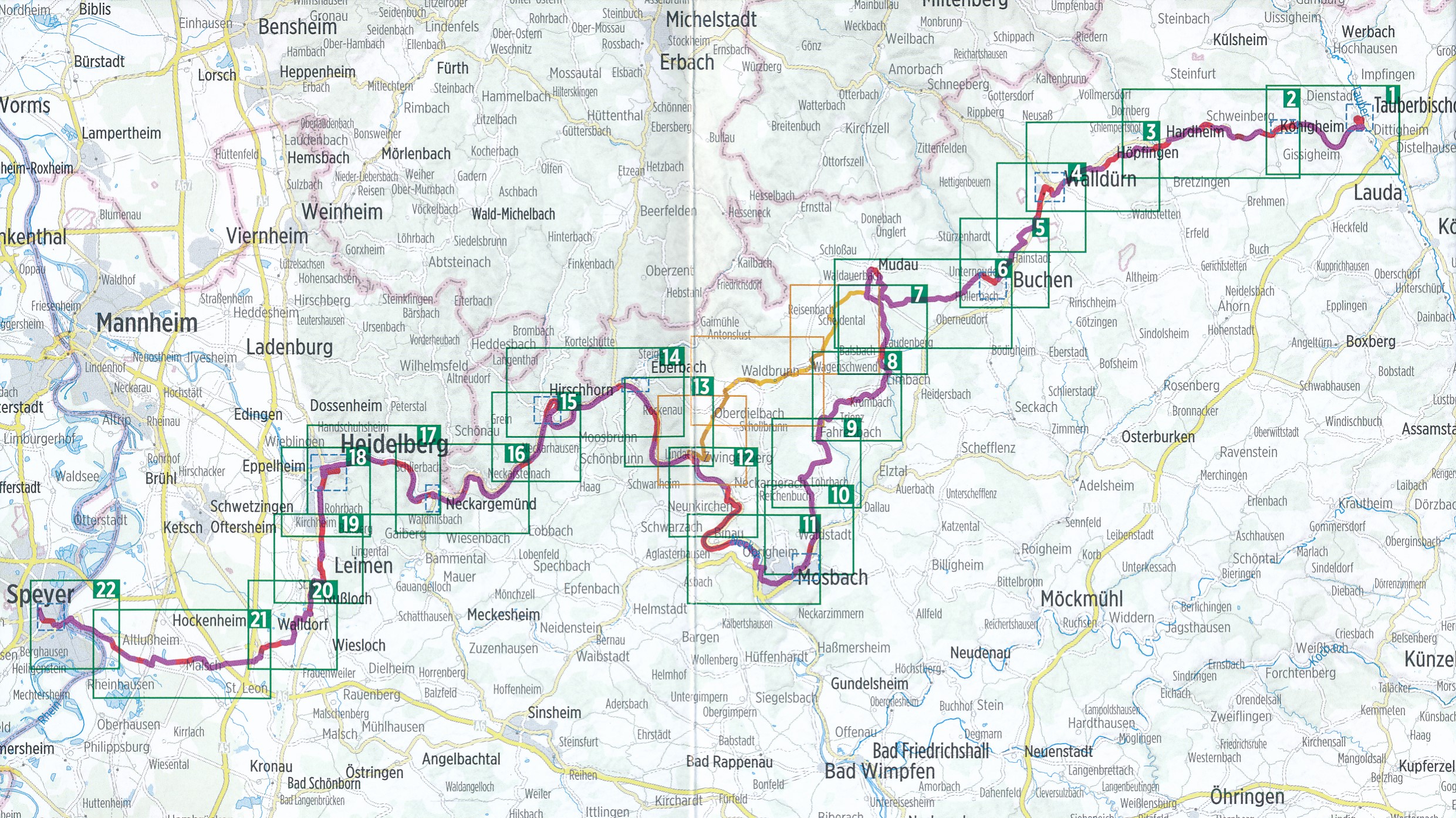 Die abwechslungsreiche Tour auf dem Radfernweg von Tauberbischofsheim über Heidelberg nach Speyer geleitet Sie durch die Ferienlandschaft des „Madonnenländchens“, die wald- und aussichtsreiche Mittelgebirgslandschaft des Naturparks Neckartal-Odenwald und das herrliche Neckartal. Die Kirchen, Kapellen, Heiligenfiguren und Bildstöcke am Wegesrand und schließlich die Domstadt Speyer entführen Sie dabei auf eine spannende Reise religiöser Zeitgeschichte.