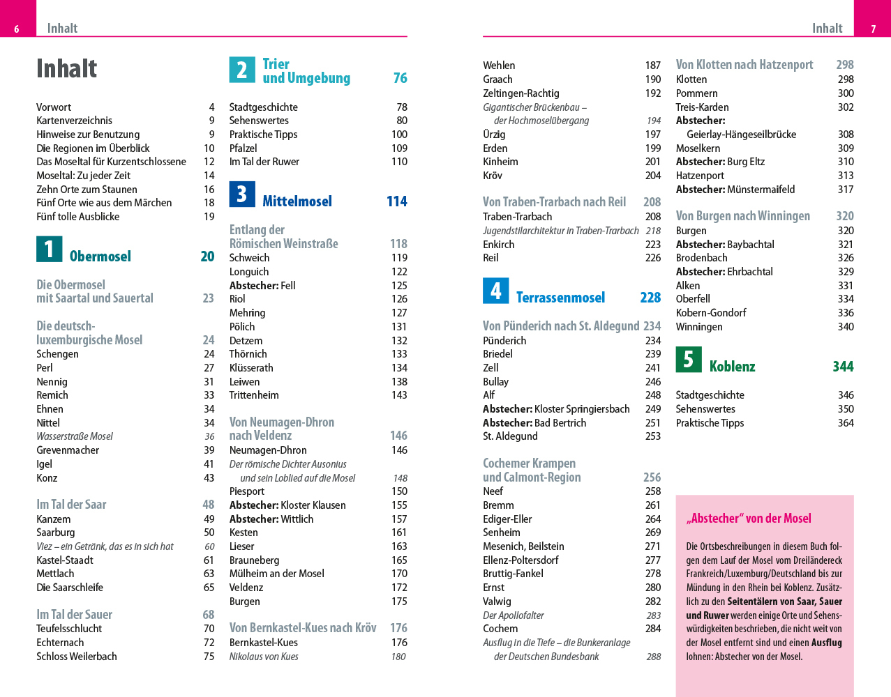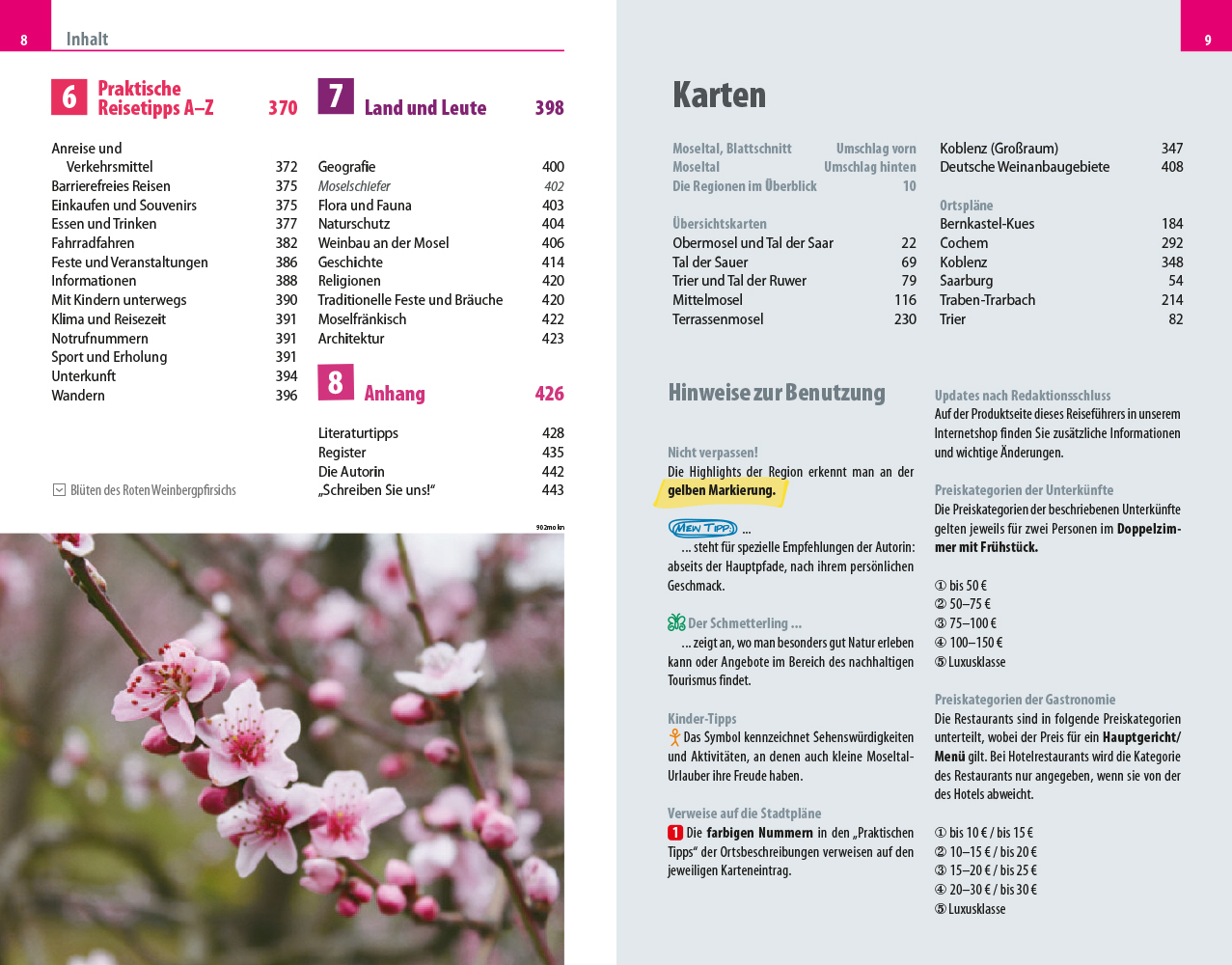 Der Reiseführer für das Moseltal von Reise Know-How - umfassend, engagiert und aktuell:Erleben Sie das römische Erbe unter anderem in Trier, der ältesten Stadt Deutschlands, mit dem römischen Stadttor Porta Nigra oder auch der Konstantinbasilika. Fahren Sie mit der Seilbahn vom Deutschen Eck über den Rhein hinweg zur Festung Ehrenbreitstein und genießen Sie von dort die fantastische Aussicht über Koblenz. Fahren Sie mit dem Fahrrad den Moselradweg entlang oder wandern Sie im Baybachtal über wilde Pfade durch urwüchsige Natur. Hier liegt auch die Traumschleife "Murscher Eselsche", welche zu einem der schönsten Wanderwege Deutschlands gekürt wurde. Staunen Sie über die Vielfalt an exotischen Schmetterlingen im Schmetterlingsgarten von Grevenmacher und runden Sie den Tag mit einem der hervorragenden Weine aus der Region ab.Wer das Moseltal individuell entdecken möchte, findet in diesem Reisehandbuch ausführliche Informationen zu Natur, Geschichte, Kultur und Traditionen dieser Region und zu allen sehenswerten Orten und Landschaften, davon 34 Seiten zu Trier und 26 Seiten zu Koblenz. Die abwechslungsreichen Tipps für Aktivitäten und besonders kinderfreundliche Angebote, die gesondert gekennzeichneten Highlights und die besonderen Empfehlungen der Autorin ermöglichen eine gute Reiseplanung. 16 Stadtpläne und Karten, ein ausführliches Register und zahlreiche Querverweise im Buch sorgen zudem für ein schnelles Zurechtfinden unterwegs.Unterwegs mit Reise Know-How - mehr wissen, mehr sehen, mehr erleben.