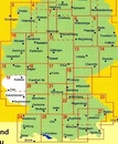Speciaal voor fietsers gemaakte kaart, waarbij juist de autowegen minder duidelijk te lezen zijn, maar waar de fietspaden gekleurd staan weergegeven. De kleur varieert naarmate de weg beter als fietsroute geschikt is. Lange afstands fietsroutes staan ingetekend, alsmede fietsenmakers, campings en interessante toeristische bezienswaardigheden. Groot voordeel van deze kaartenserie is bovendien dat het een heel groot gebied per kaart bestrijkt: ca. 130 x 160 km.!