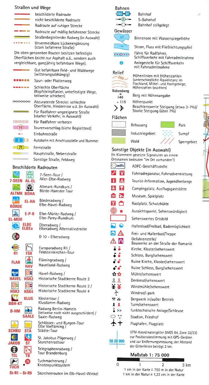 Gedetailleerde fietskaart van populaire regio's in Duitsland: Elbe / HavelMit Elberadweg von der Havel bis zur Saale. Von Wittenberge bis Barby