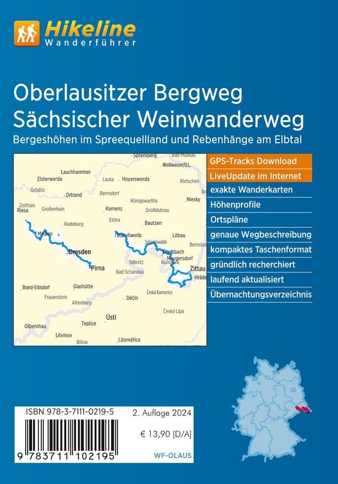 Wandelgids Hikeline Oberlausitzer Bergweg - Sächsischer Weinwanderweg | Esterbauer (9783711102195)