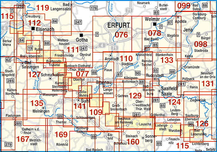 Frei von Werbeanzeigen, reißfest, wetterfest durch Beschichtung mit hochwertiger nicht spiegelnder Folie, mit ausgewählten Straßennamen zur besseren Orientierung, farbig hervorgehobenen Ausflugszielen, Sehenswürdigkeiten der Umgebung in Text und Bild und alle regionalen und überregionalen Wander- und Radwanderwege sowie ausgewiesene Radtourenvorschläge mit Entfernungsangabe in Kilometern, GPS-fähig. Mit wetterfester Klarsicht-Schutzhülle.Entstanden in enger Zusammenarbeit mit dem Thüringer Rennsteigverein e.V. Neustadt a.R.