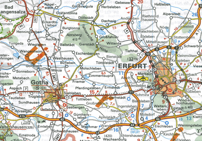 Part of the orange regional series from Michelin, this Germany Mideast map shows this part of Germany in excellent detail. Primary & secondary road networks are clearly marked out with indications of the number of lanes, intermediate distances and various possible road obstacles or things you should know including steep hills, height limits, toll barriers, prohibited roads and roads subject to restrictions.