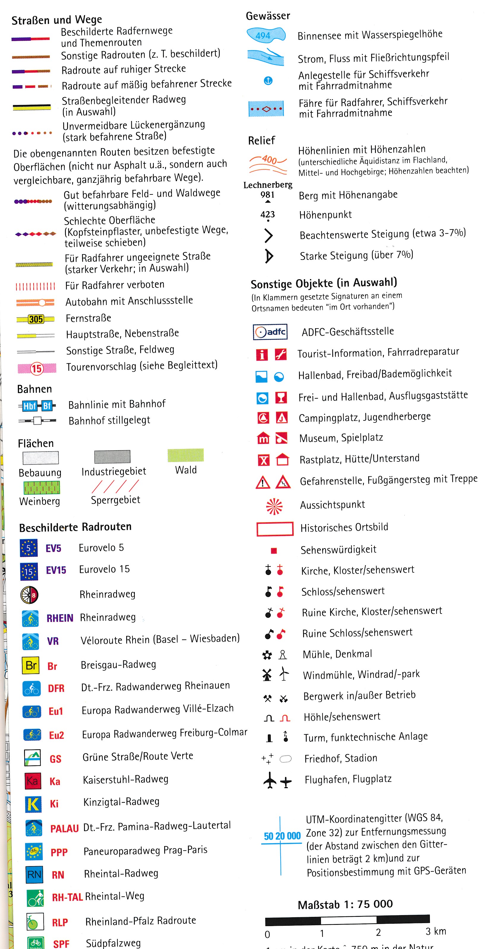 Heel goede fietskaart van een gebied wat een groot deel in de Elzas en Vogezen ligt. Het gebied van deze kaart ligt tussen Saverne - Wissembourg - Karlsruhe - Strasbourg - Colmar. Dit is de meest geschikte fietskaart wanneer u wat langer in één regio verblijft. De kaart is van de ADFC (Algemeine Deutsche Fahrrad Club).