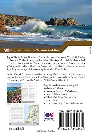 Day Walks in Cornwall features 20 circular routes between 7.2 and 13.7 miles (11.6km and 22km) in length, suitable for hillwalkers of all abilities. Researched and written by experienced authors Jen and Sim Benson, and covering the extremities of this stunning peninsula, the walks reach areas from Bude to the Isles of Scilly, and from Rame Head near Plymouth to Lizard Point on the southernmost tip. Taking advantage of the South West Coast Path, discover a unique view of the charming coastline at every turn in this Area of Outstanding Natural Beauty.